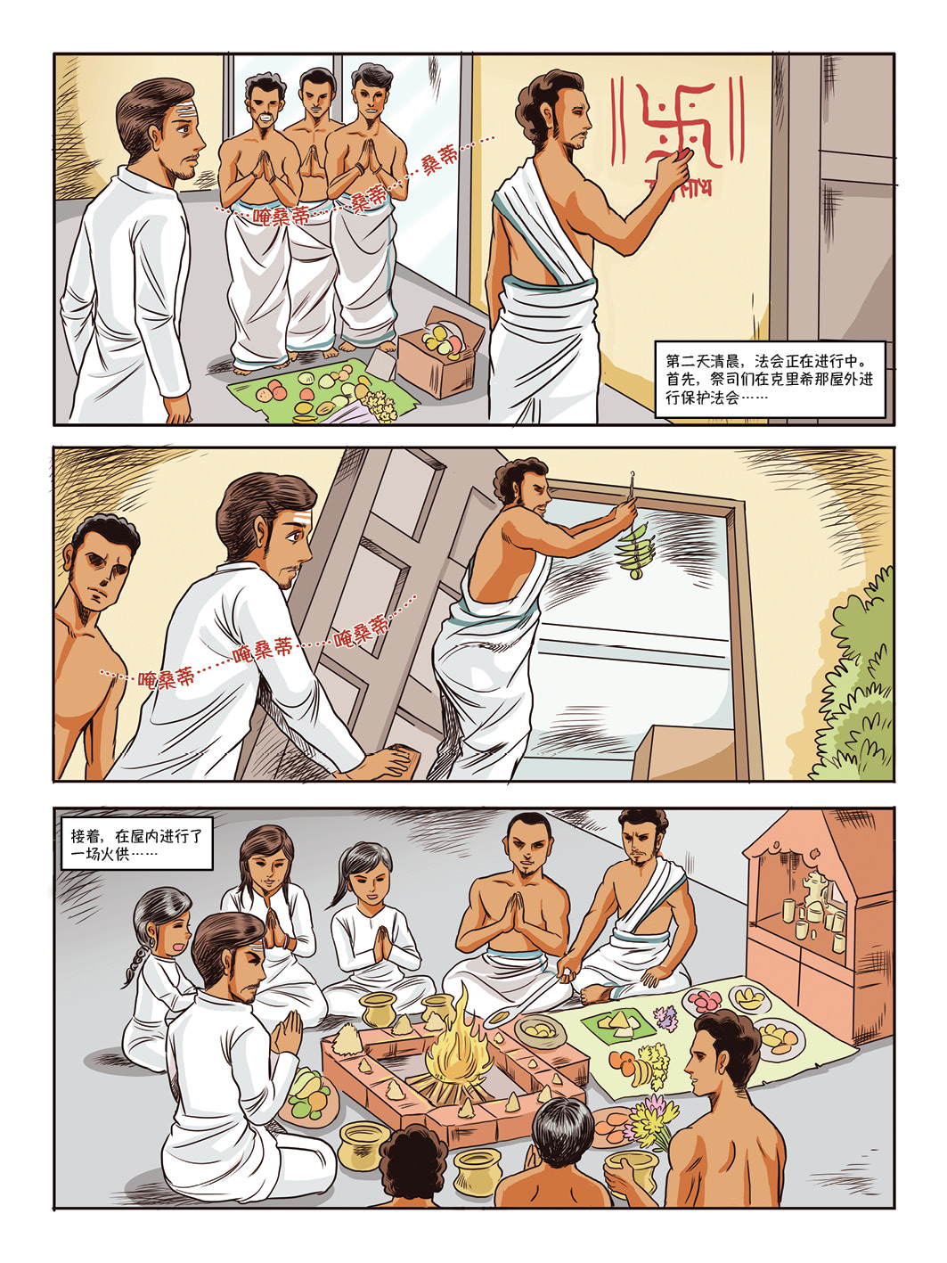 接下来的几个小时,仁波切继续讲述他去到印度甘丹寺之后的生活。虽然印度教诸神祇的故事复杂,但仁波切在当地却发现漫画是一种小孩易懂、成年人又能愉快阅读的媒介。此时,仁波切开始向我们展示许多色彩明快的漫画刊物,那些都是他最喜欢的印度漫画出版社—阿玛尔·奇德拉·卡塔(Amar Chitra Katha音译)出版的漫画刊物。