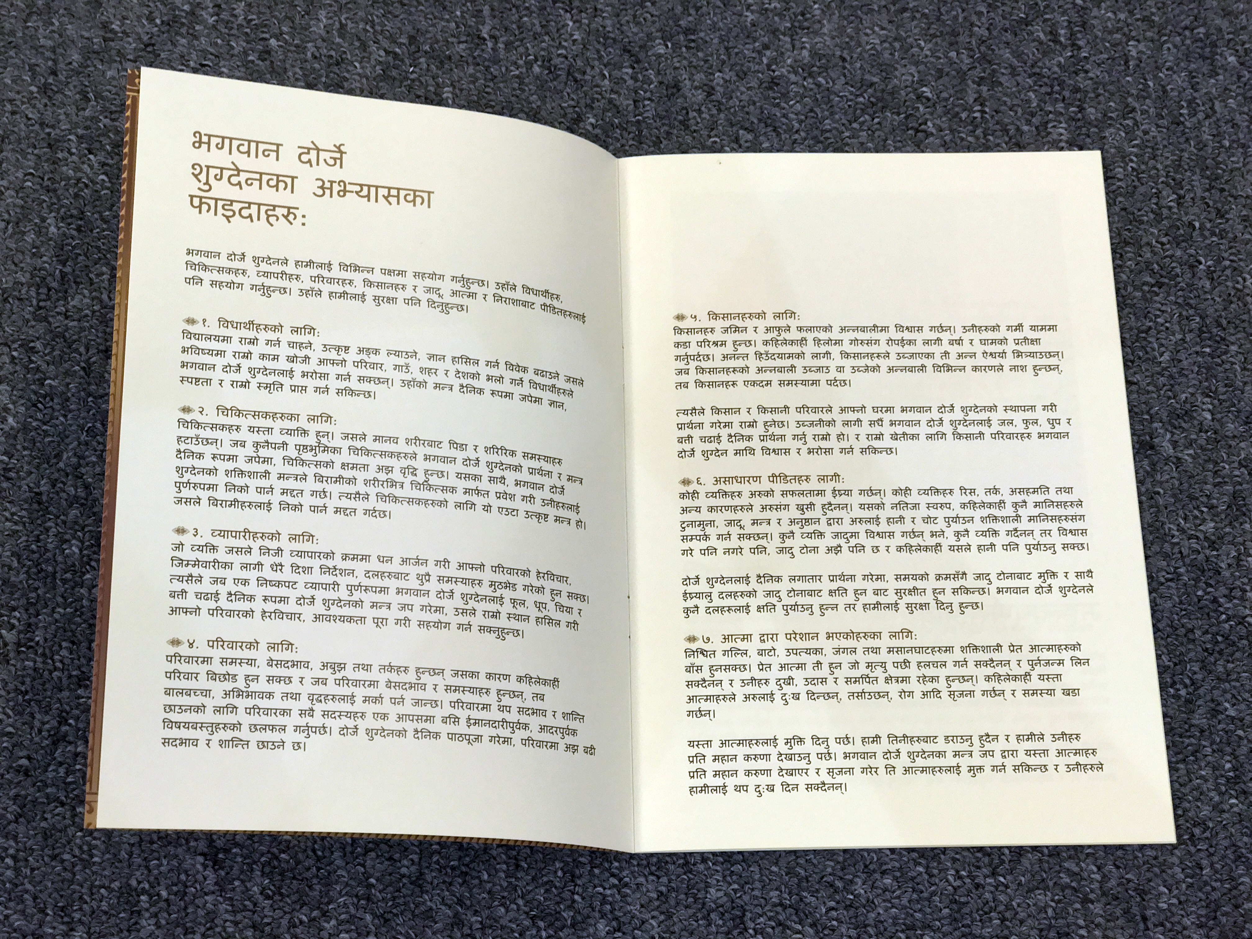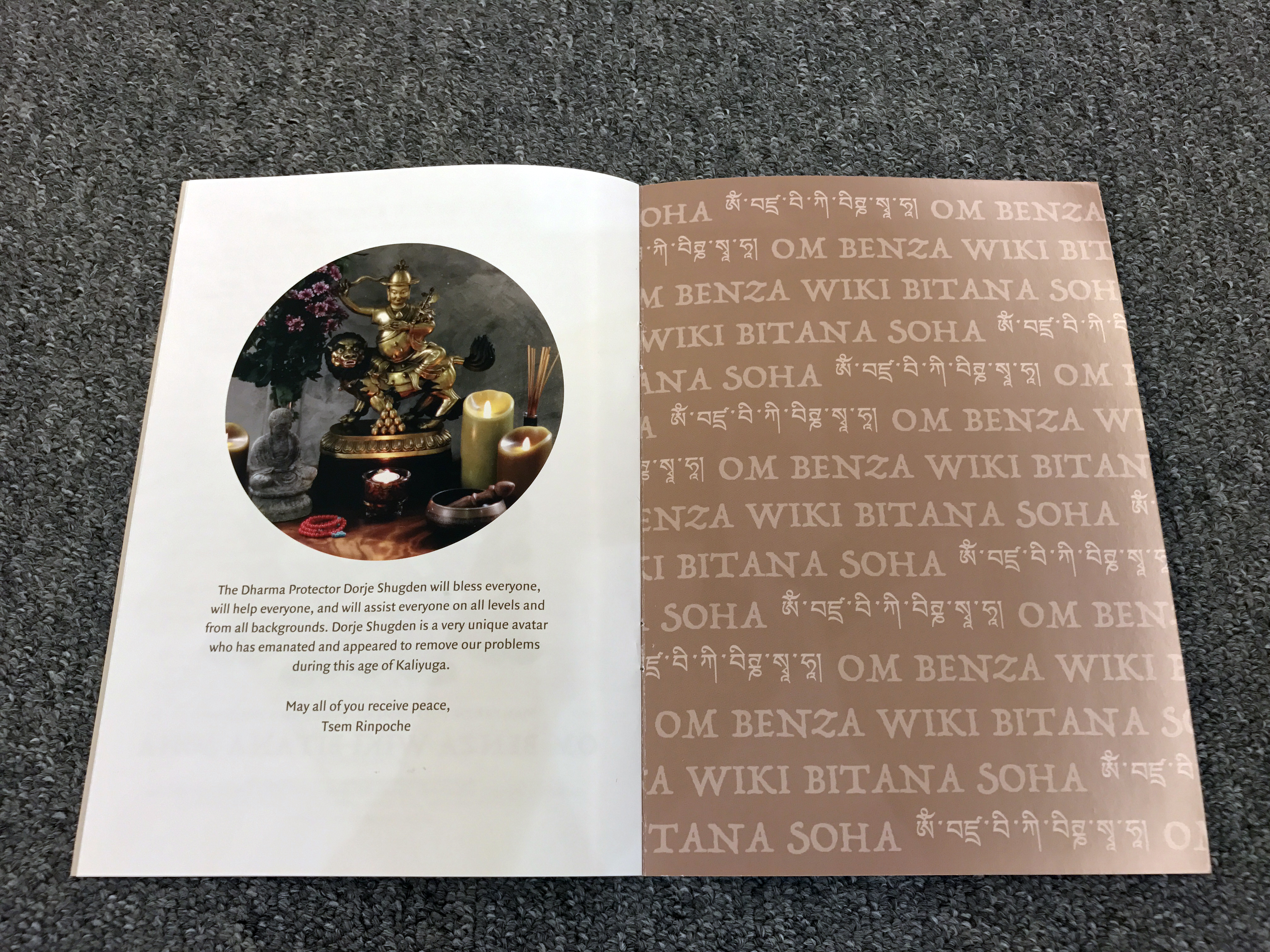 - 一本解说该修持法的缘起、益处,以及简短祈愿文的小册子