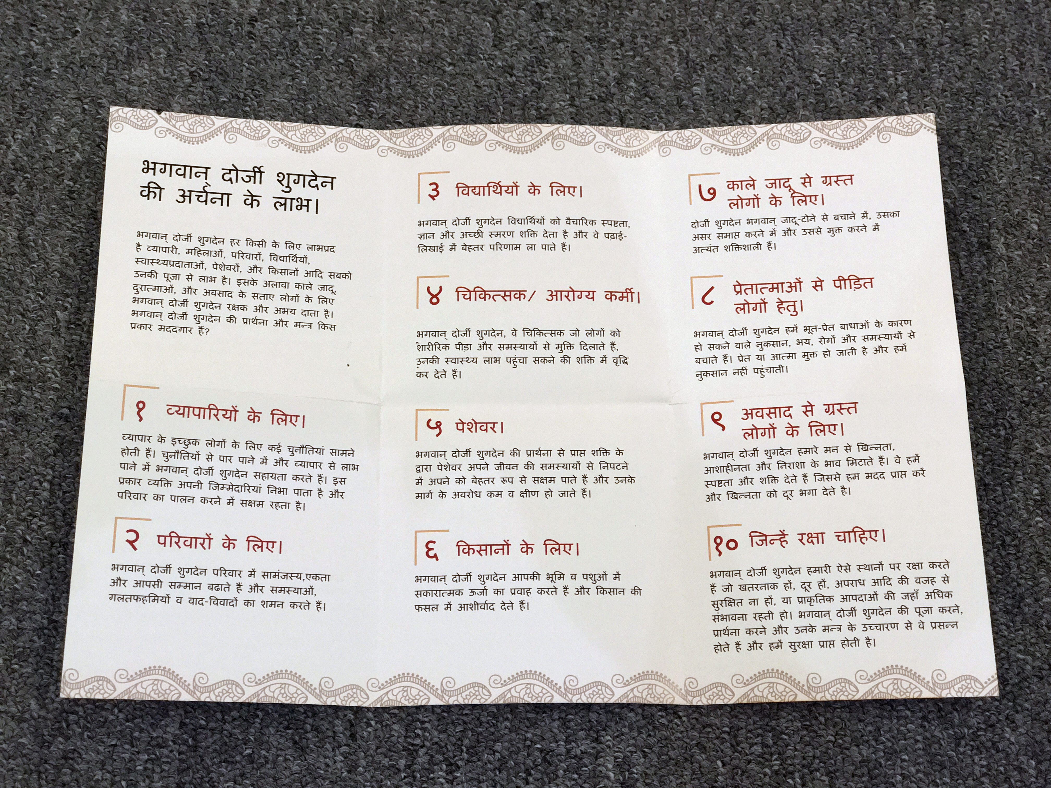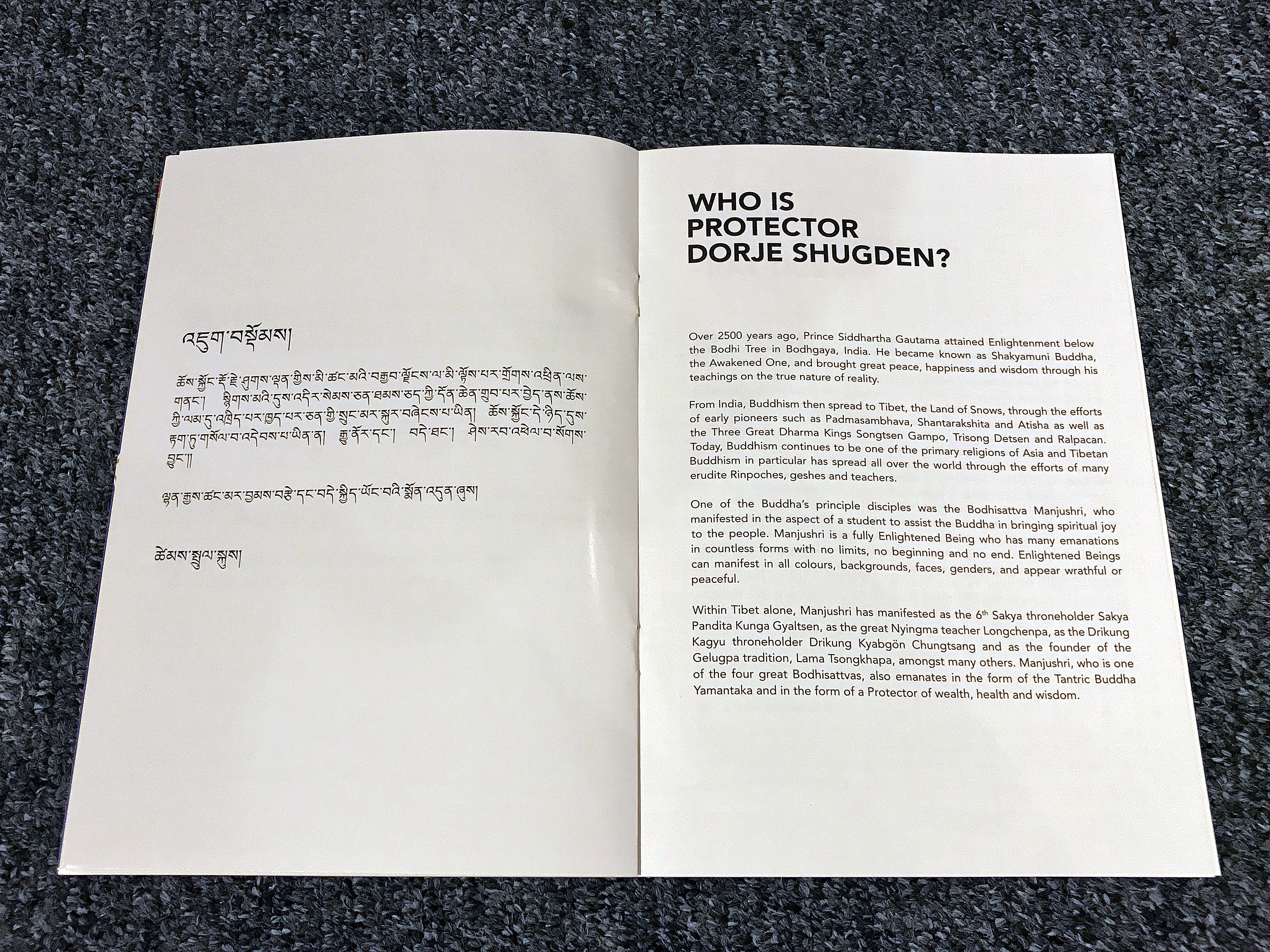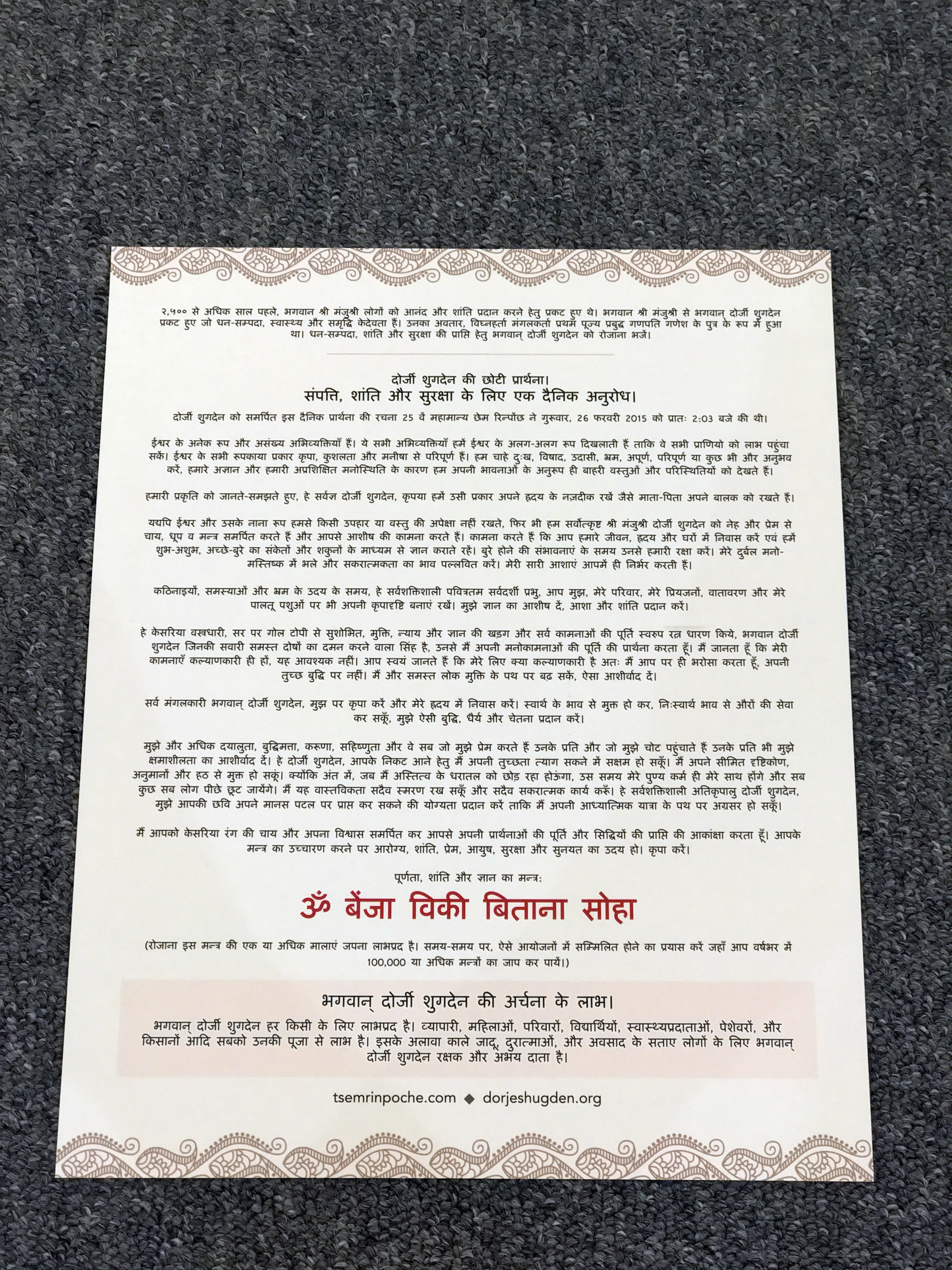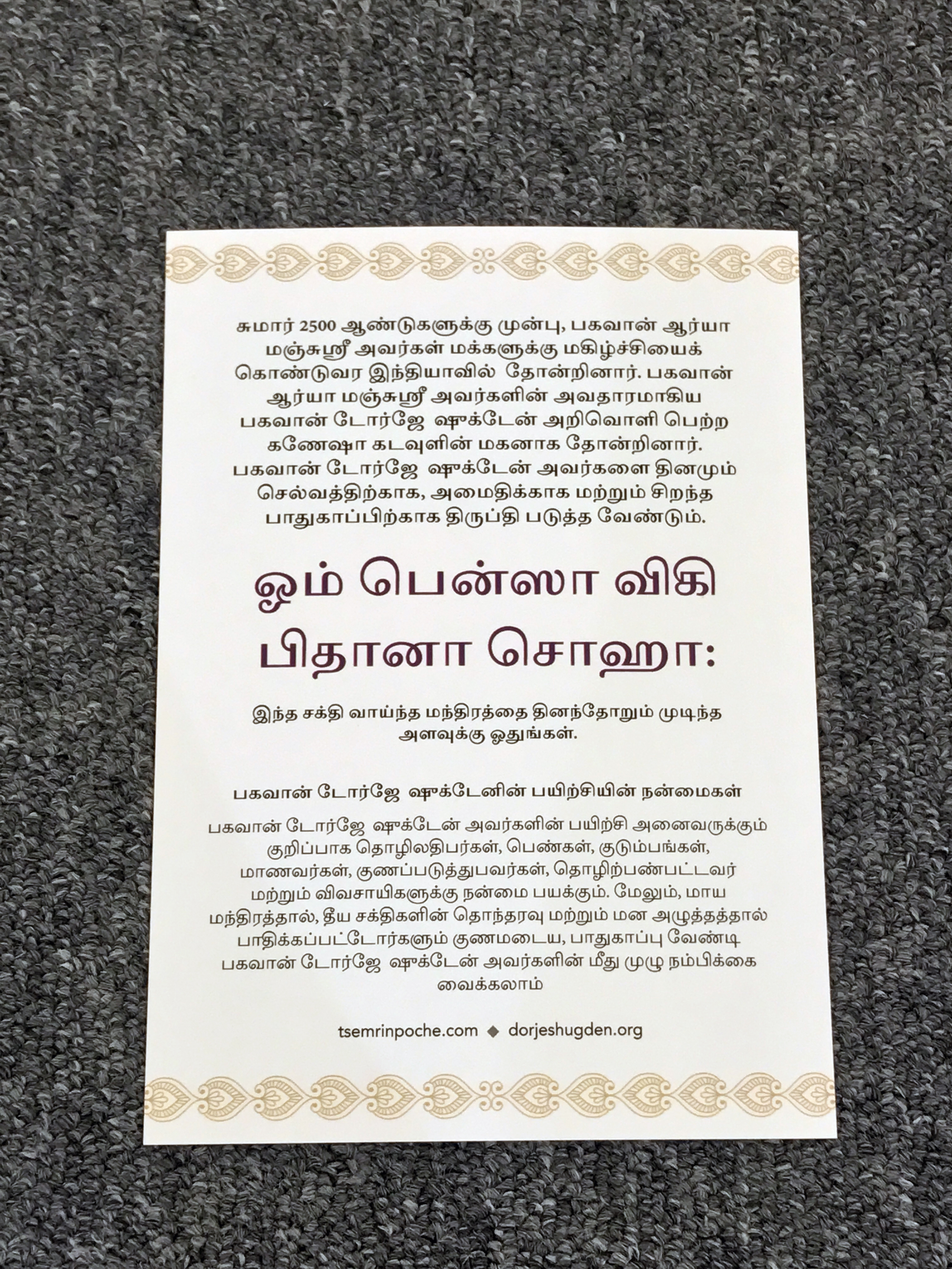 - दोर्जे शुग्देन सबै ठाँउमा फैलाउ। (अंग्रेजी English, तिब्बती བོད་ཡིག, चिनियाँ 中文, हिन्दी, तामील தமிழ் र नेपाली)