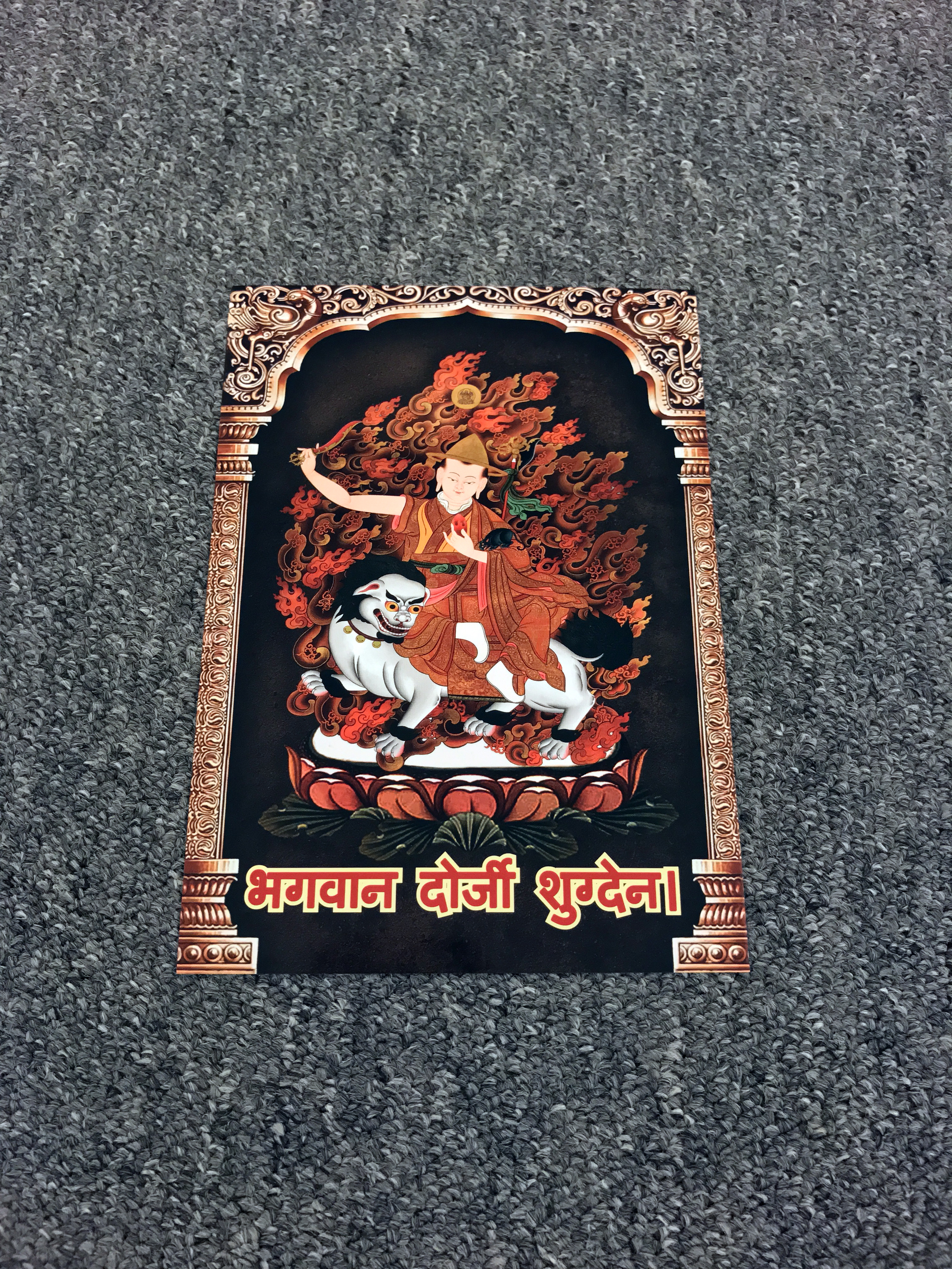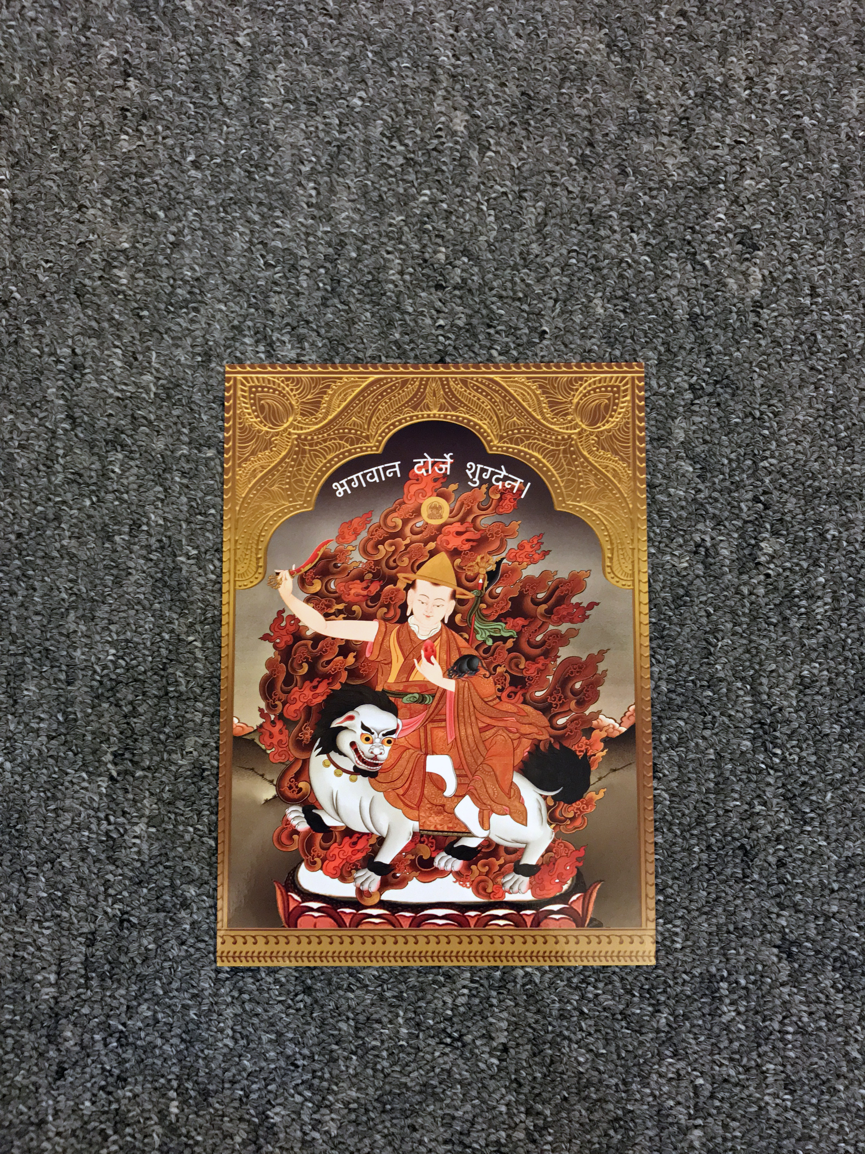 - 附在手册上的钱包大小的护身卡,让你随身带着多杰雄登的护持