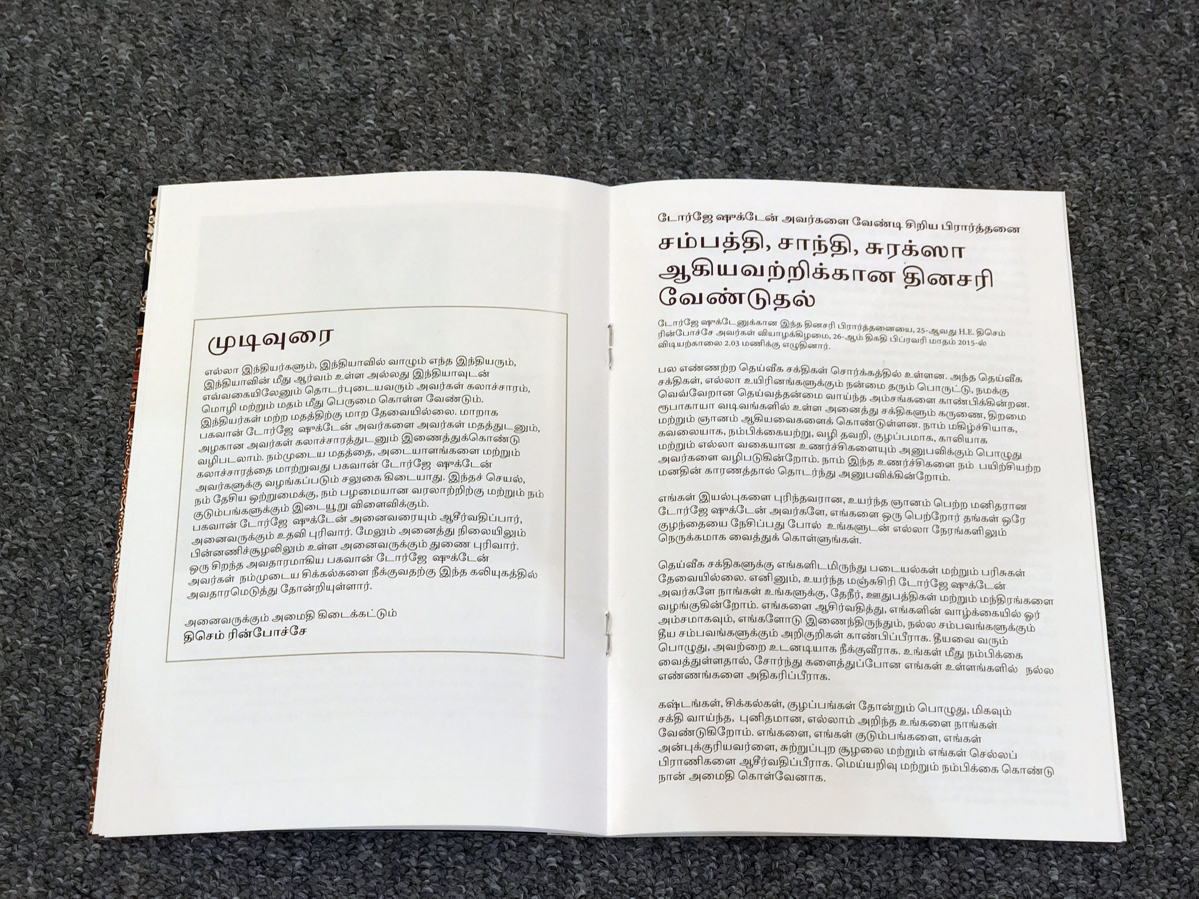 Enclosed are the prayers in English, Chinese and Tibetan.