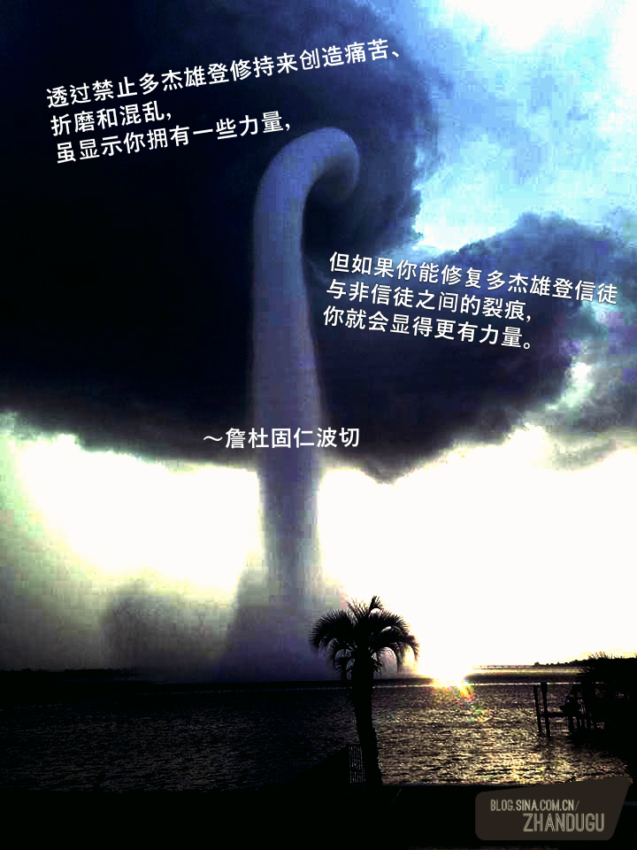 我们有权修持自己想要的宗教、信仰和道路。 对与错取决于我们。现存的每一个主流宗教都有各自的支持者和反对者。有些人视某些主流宗教为邪恶,而另一些人则视之为上天堂的神圣途径。每个人都有自己的看法,争议不会有停止的一天。解决方法呢?不带偏见地让每个人都享有宗教自由。在人类历史上,许多宗教领袖曾谴责他人的宗教,导致了可怕的灾难和不必要的痛苦。我们目前生活在21世纪,没有任何一个世俗或精神领袖可以“建议”或“抵制”任何一个人的信仰。毕竟,人与人之间的和谐,比哪一个宗教是对还是错,哪一个才能带你到天堂或地狱,都来得重要。在这个蓝色的小星球上,我们需要和谐。宗教既可以是实现和平与全球和睦的主要因素,也可以是战争的巨大煽动者。这取决于信徒,但更多是由各宗教领袖所决定。 一位宗教领袖若说出“如果你不跟从我的宗教或你选择了自己的信仰,那么你将与我无关,也不能参与我或我的群体”这种话,其伤害性是十分巨大的。它允许宗教进一步将偏见和优越感神圣化。宗教领袖绝对不应该批评或劝阻何人的宗教信仰。 当你过度用力扼杀的时候,人们就会远离宗教。